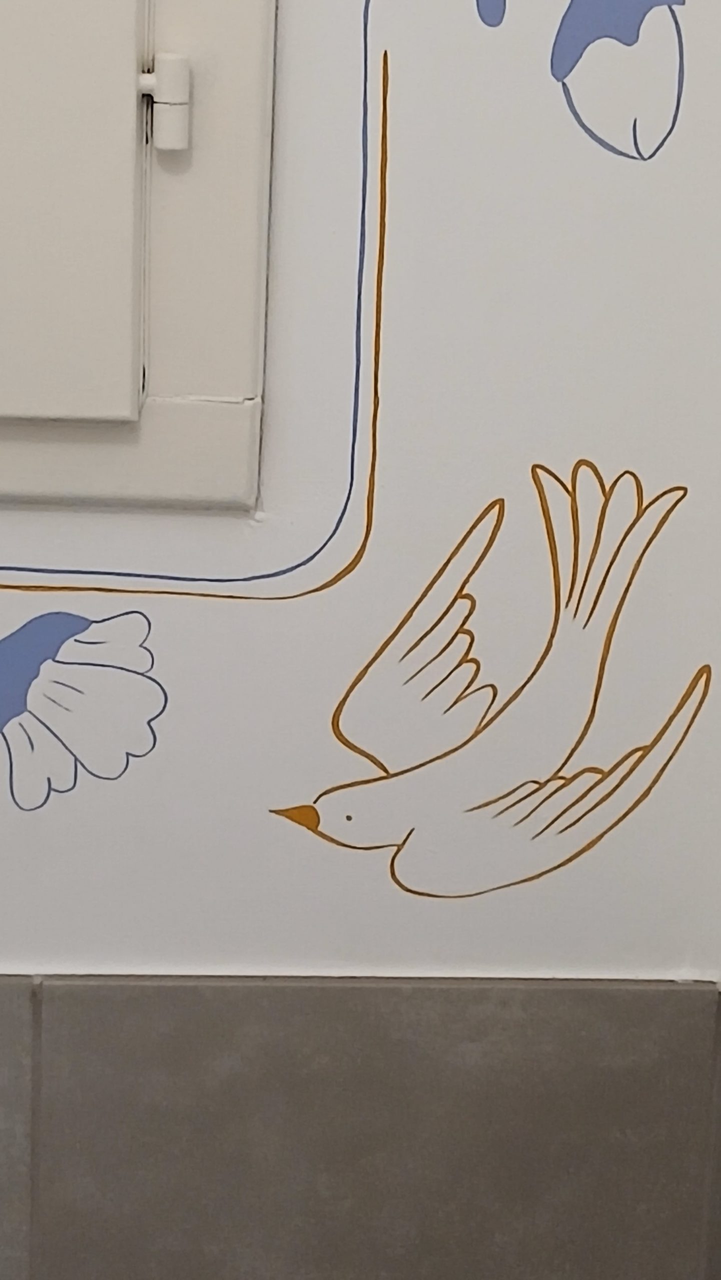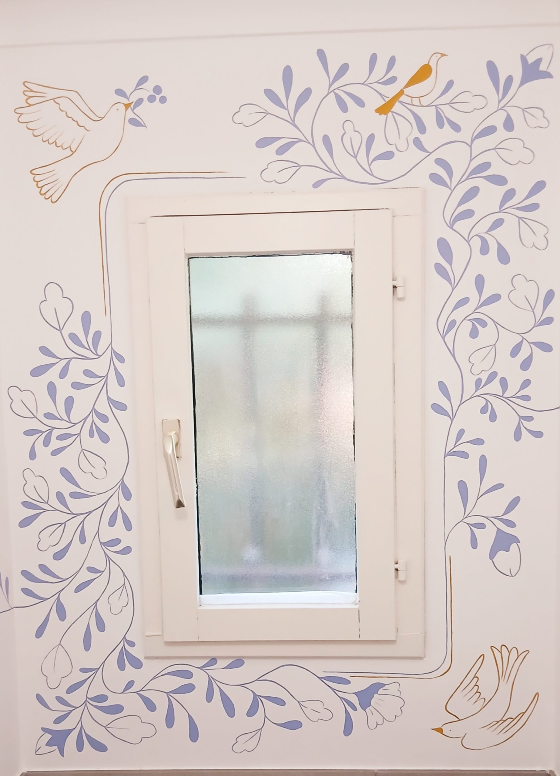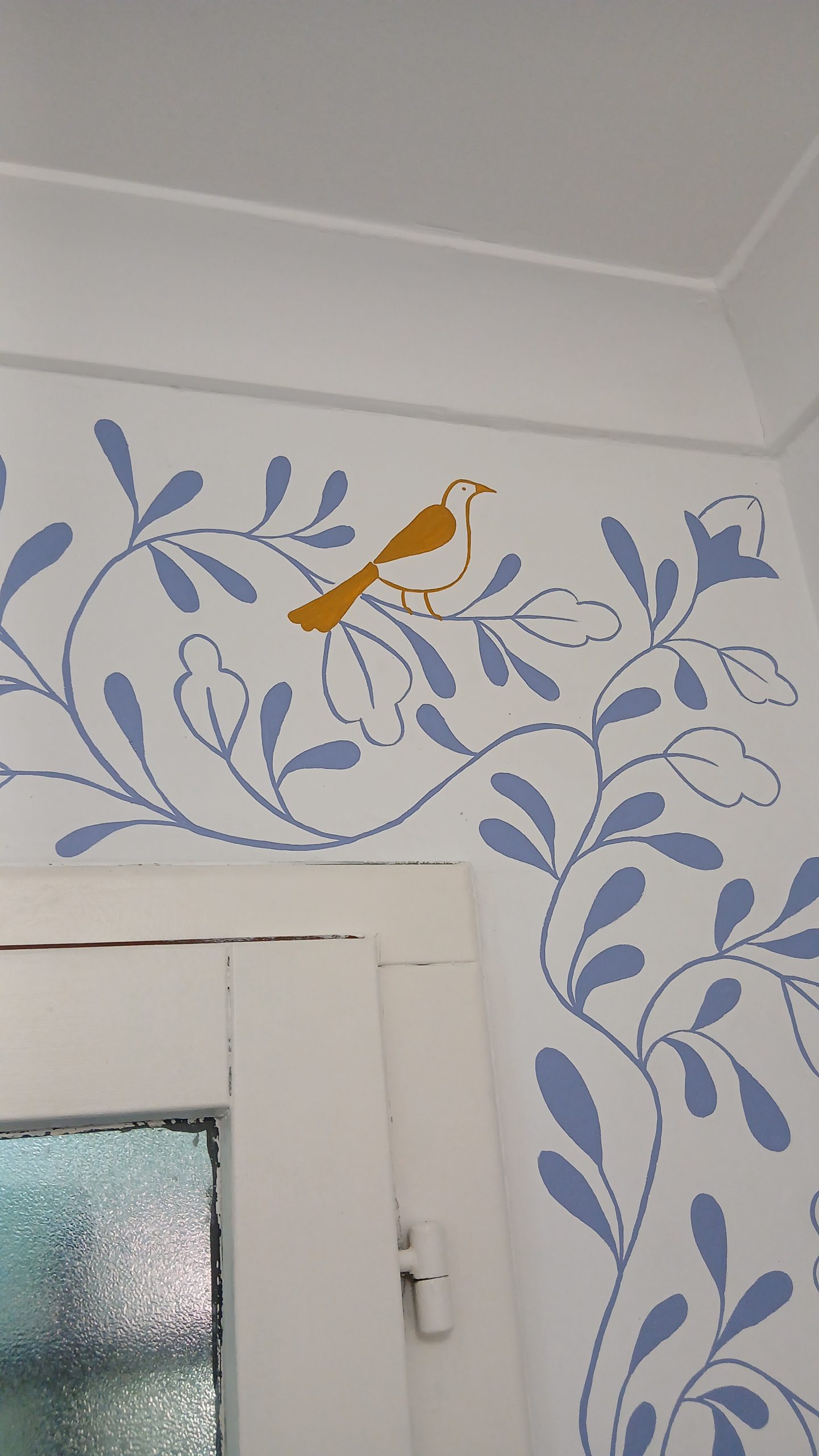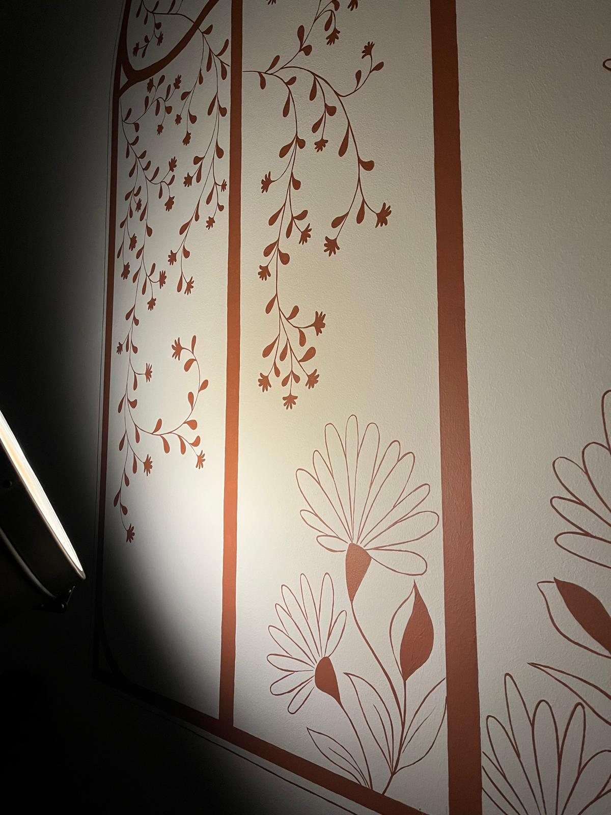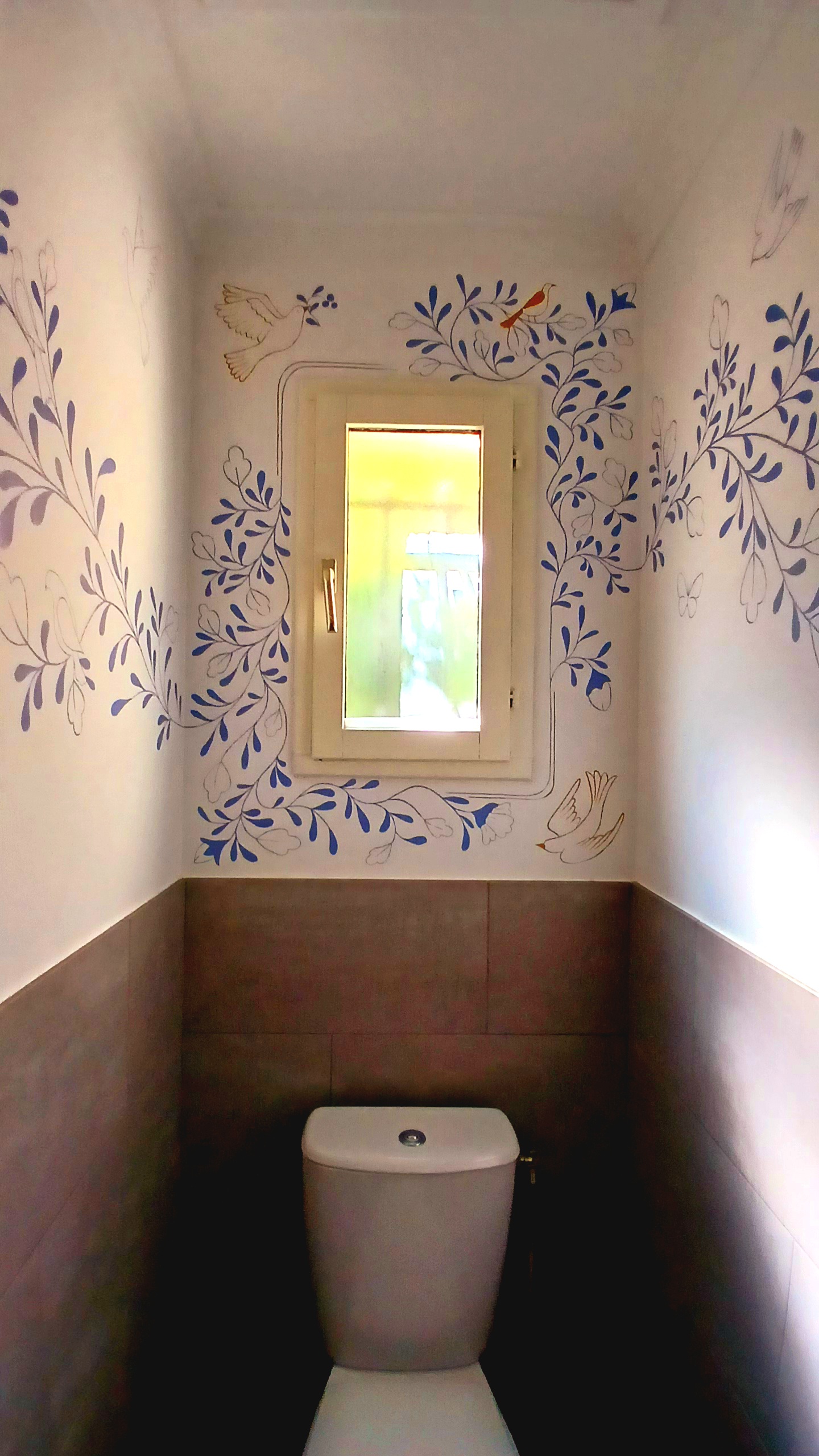 Encore une magnifique fresque murale qui donne de la profondeur à la pièce. C’est tellement plus joli et personnel, qu’une simple tapisserie ou une peinture. Bravo !