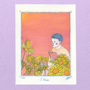 L’oiseau est une illustration originale de 13×18 cm sur du papier aquarelle en 310g/m2.