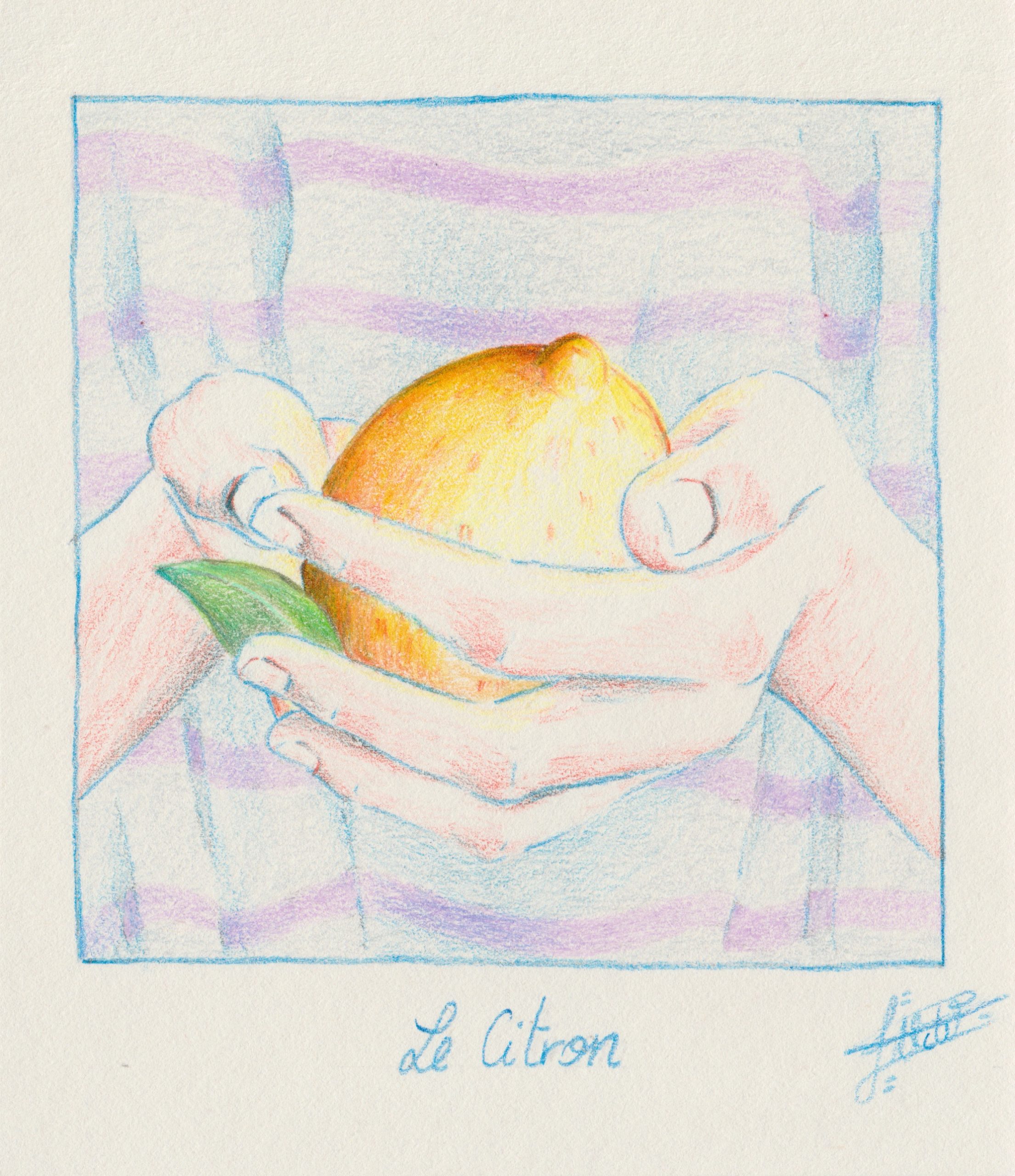 Le Citron – Illustration originale aux crayons de couleur (9,5×11 cm)