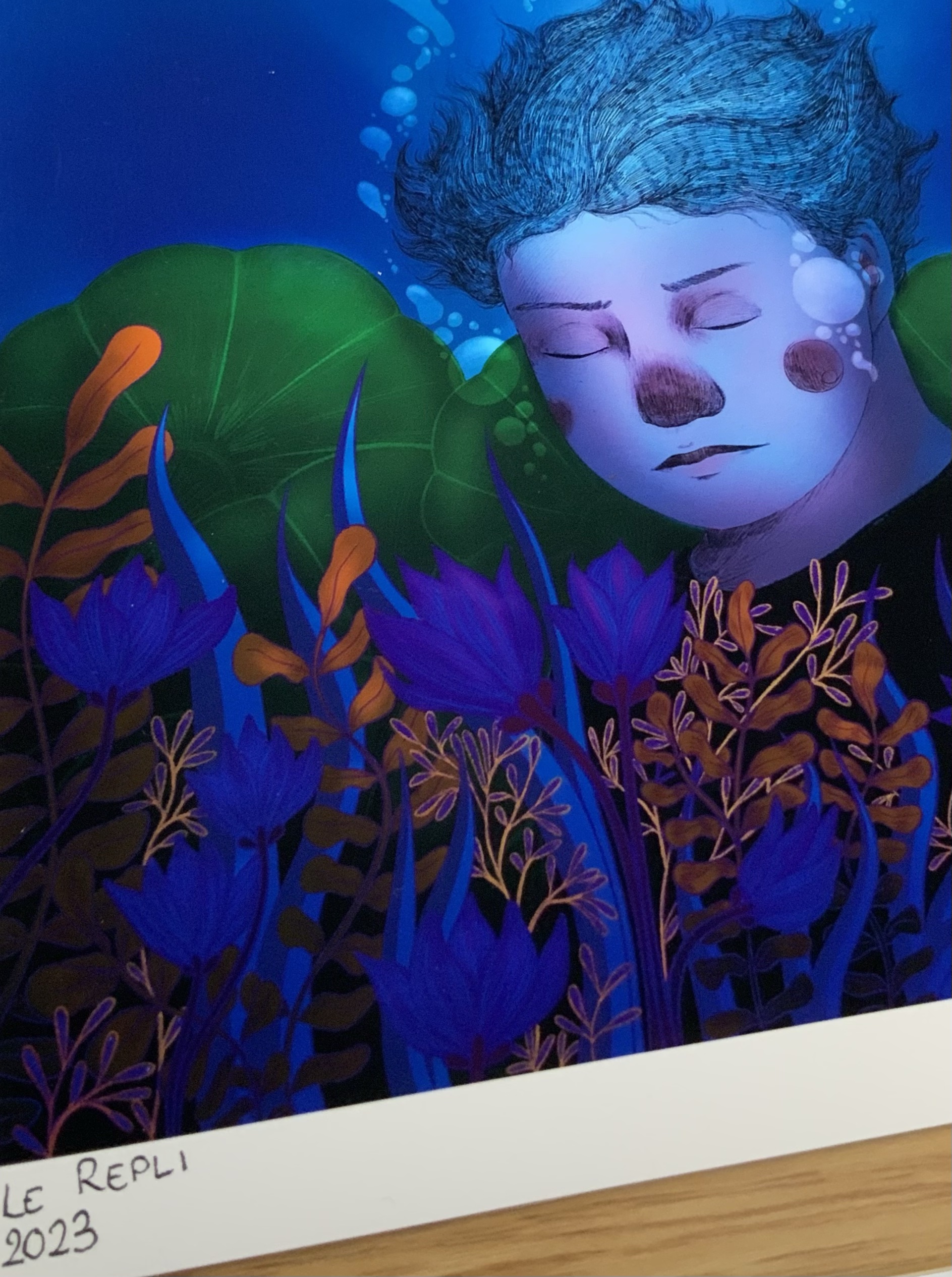 Impression fine art d’une illustration digitale sur papier canon édition Etching Rag (310g/m2) au format A2 .