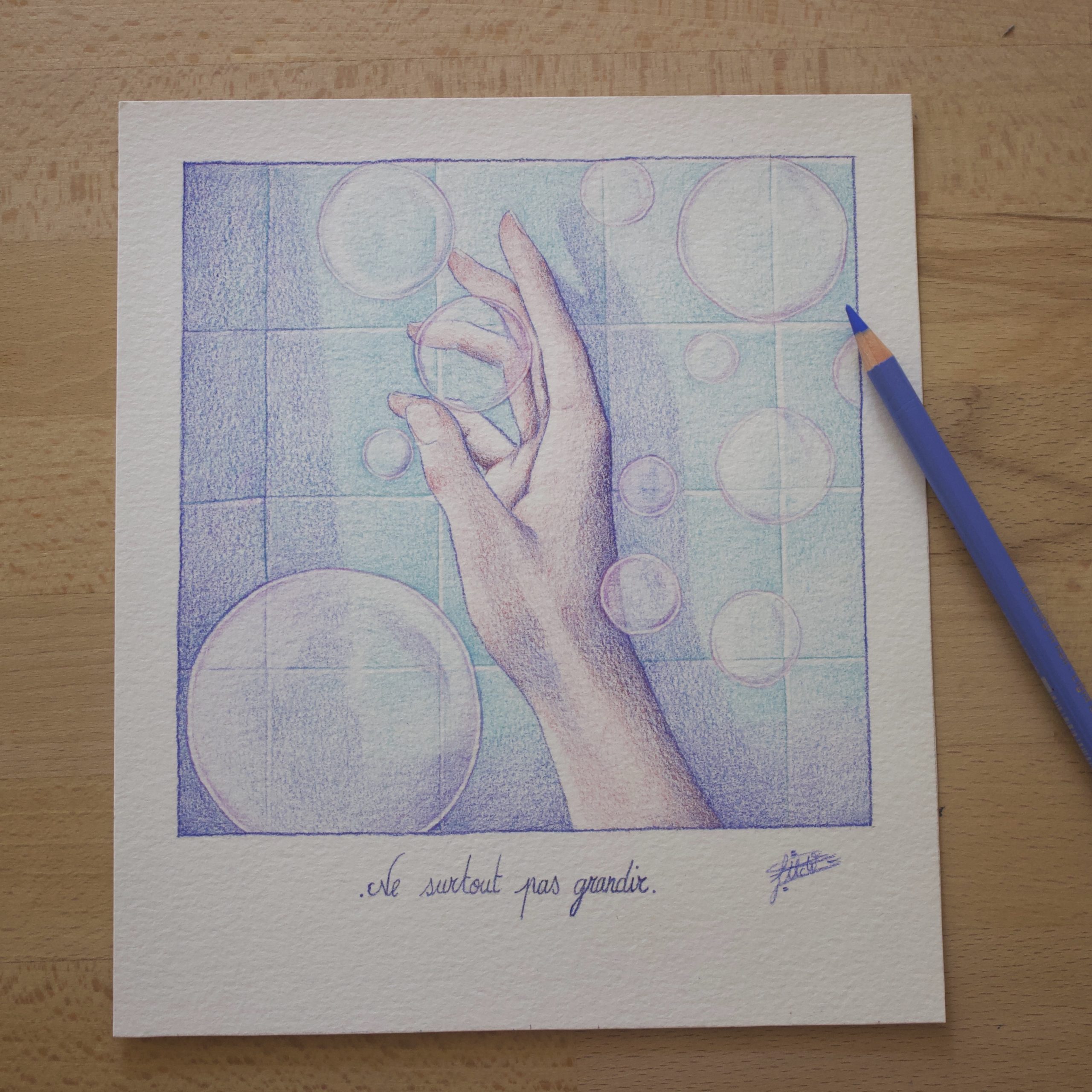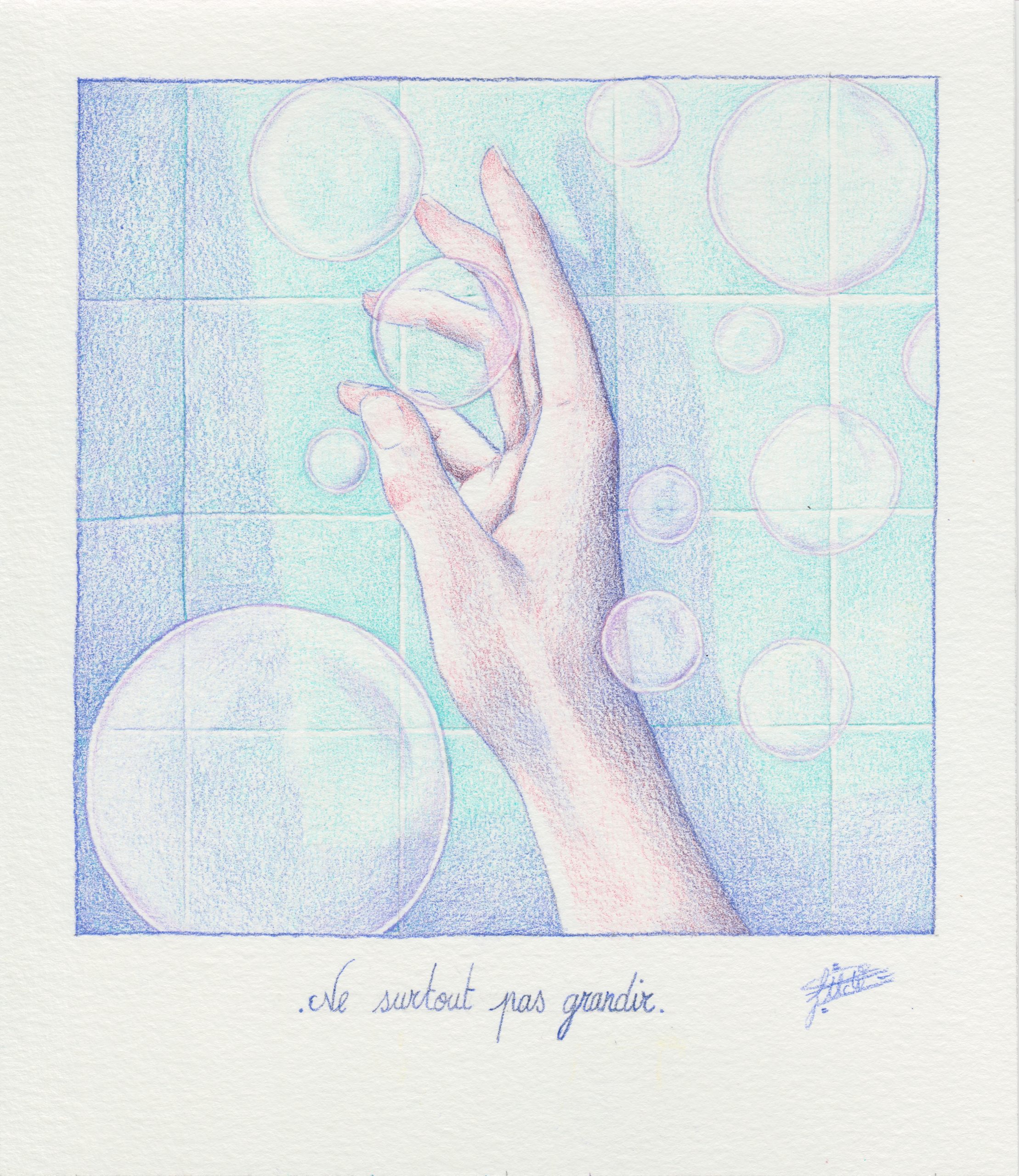 Ne surtout pas grandir – Illustration originale aux crayons de couleur (19x22cm)