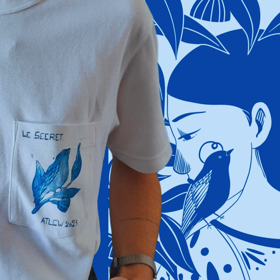Le t-shirt personnalisé en linogravure « Le Secret » est une pièce unique.